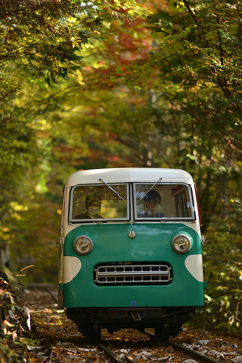 一般列車の運行が終わる15時頃から、クラブツーリズム主催の撮影会イベントが幕を開ける。参加者向けフォトランとしていくつかの車両の走行が予告されていたが、その先陣を切ったのが“冷蔵庫”こと酒井製No.5。お世辞にもカッコイイとは言えないが、VWバンを思わせるキモかわいい顔つきが魅力のモーターカーである。天候は晴れに恵まれたが、林鉄ということもあり、季節・時間的に線路はほとんどが木々の影の中。それでも柔らかの木漏れ日で、ハイコントラストのバリ順光を望まなければいい雰囲気である。始まりかけの紅葉をあしらって、正面がちの望遠構図でカメラをセット。間もなく、東欧辺りを思わせる森林の中のか細いレールに、愛嬌のある小さな車体がゆっくりと進んできた。 今年も、つい先週の土日でこのイベントが開催されたとのこと。私も行きたかったが、2学期中間試験の真っただ中で業務が立て込み出撃を諦めた。それにしても、最近は各地で撮影会と称したイベントがずいぶん多くなった。そこだけ見ると鉄活動があちこちで活性化しているようにも思えるが、実際には、それはありのままの現役の鉄道情景にすっかり魅力がなくなったことの裏返しなのではないか。確かにこれから山が錦に染まる季節だが、東北方面にブルトレやキハを追いかけていた頃のようなイマジネーションがどうにも湧かなくなっている。はてさていったいどうしたものか。思案するうち秋は更けていくのである。 |
