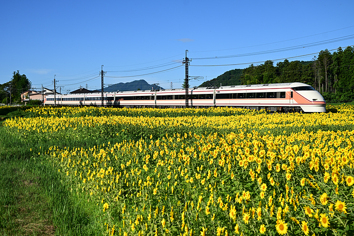 784.東武100系スペーシア「きぬ110号」 倉ケ崎の向日葵畑